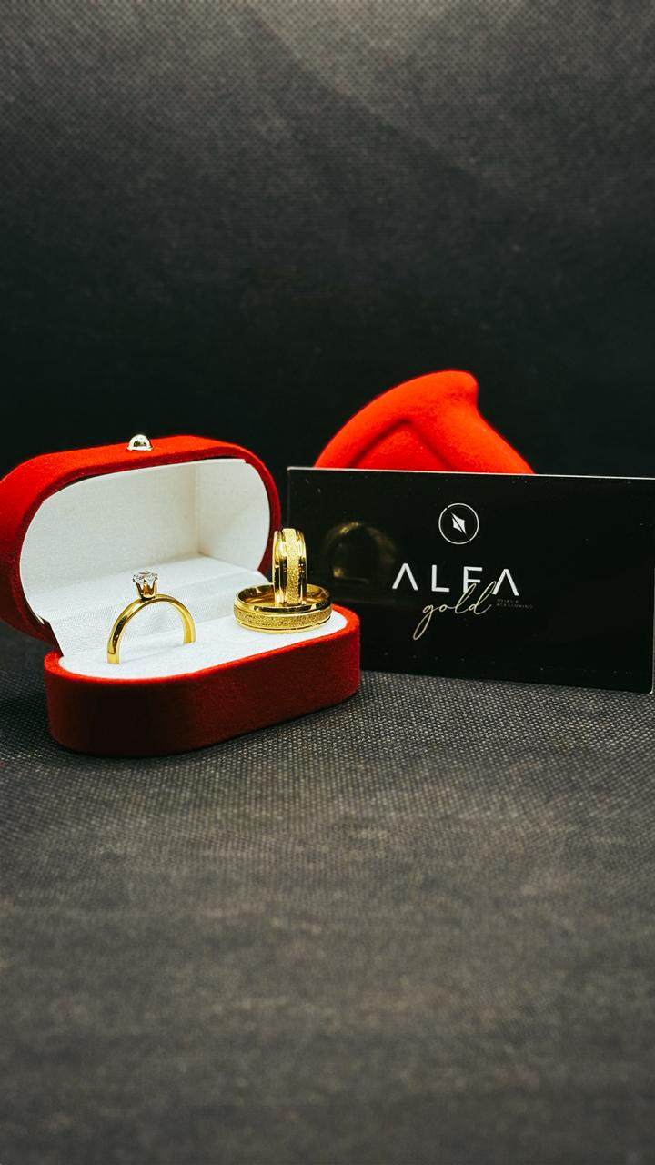 Um símbolo de amor eterno com design moderno e marcante. Este par de alianças douradas possui 6mm de largura e traz um elegante acabamento diamantado no centro, realçado por um friso que adiciona sofisticação e brilho ao modelo.